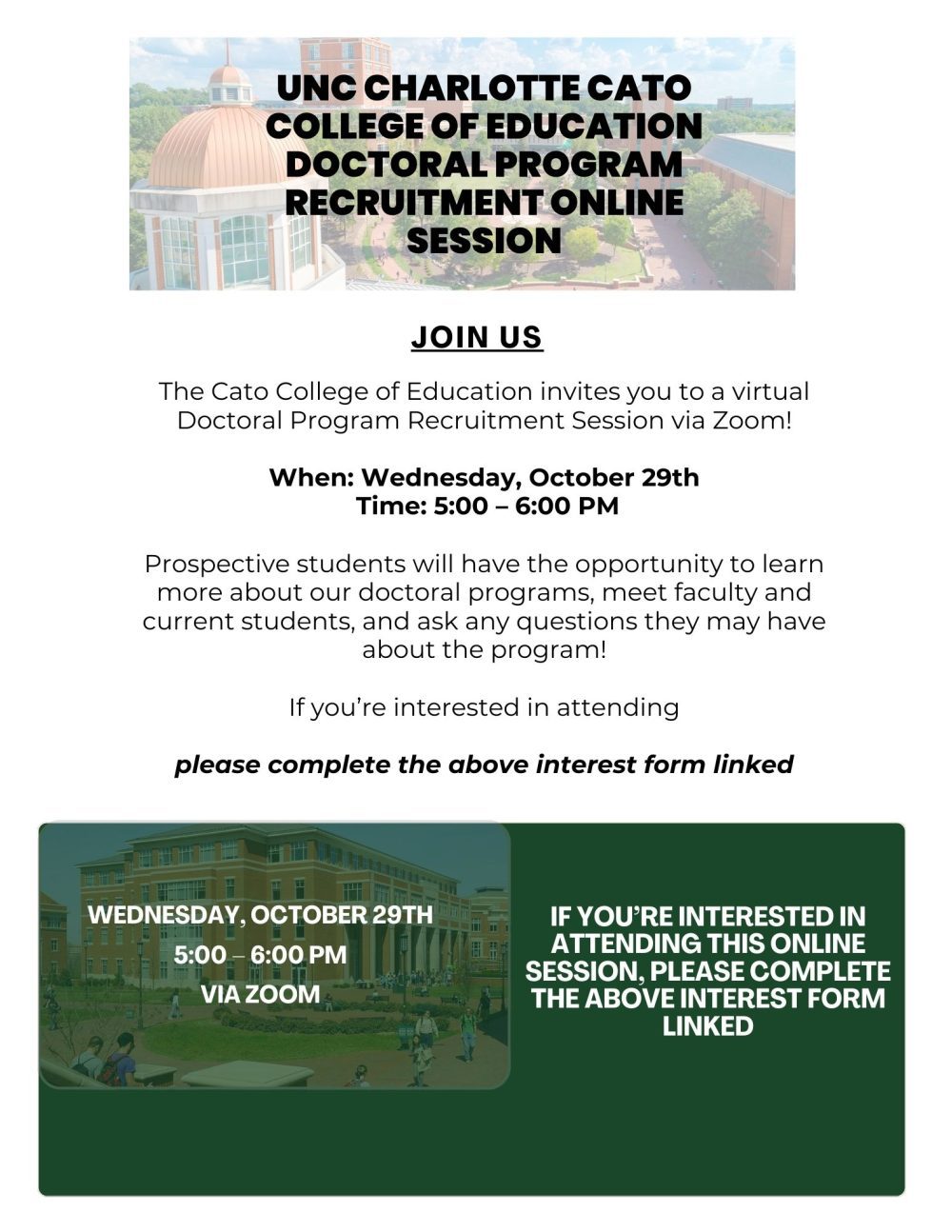 Each August, the Cato College of Education hosts a Doctoral Program Open House look for a future announcement of a similar event in August 2026.